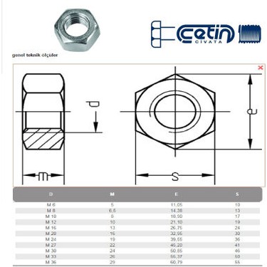 Altı Köşe Başlı Civata ölçüleri