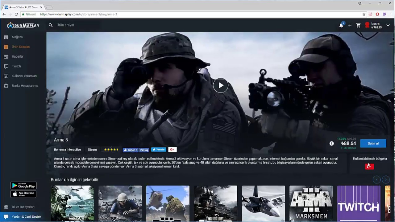 10 indirimle arma 3 steam cd key satın al. Arma 3 satış sitesi gamesatış güvencesi ile en ucuz fiyata hemen teslim al. Bilgisayarınızın arma 3 çalıştırabilip çalıştıramadığını kontrol edin. 10 ekstra indirimli arma 3.