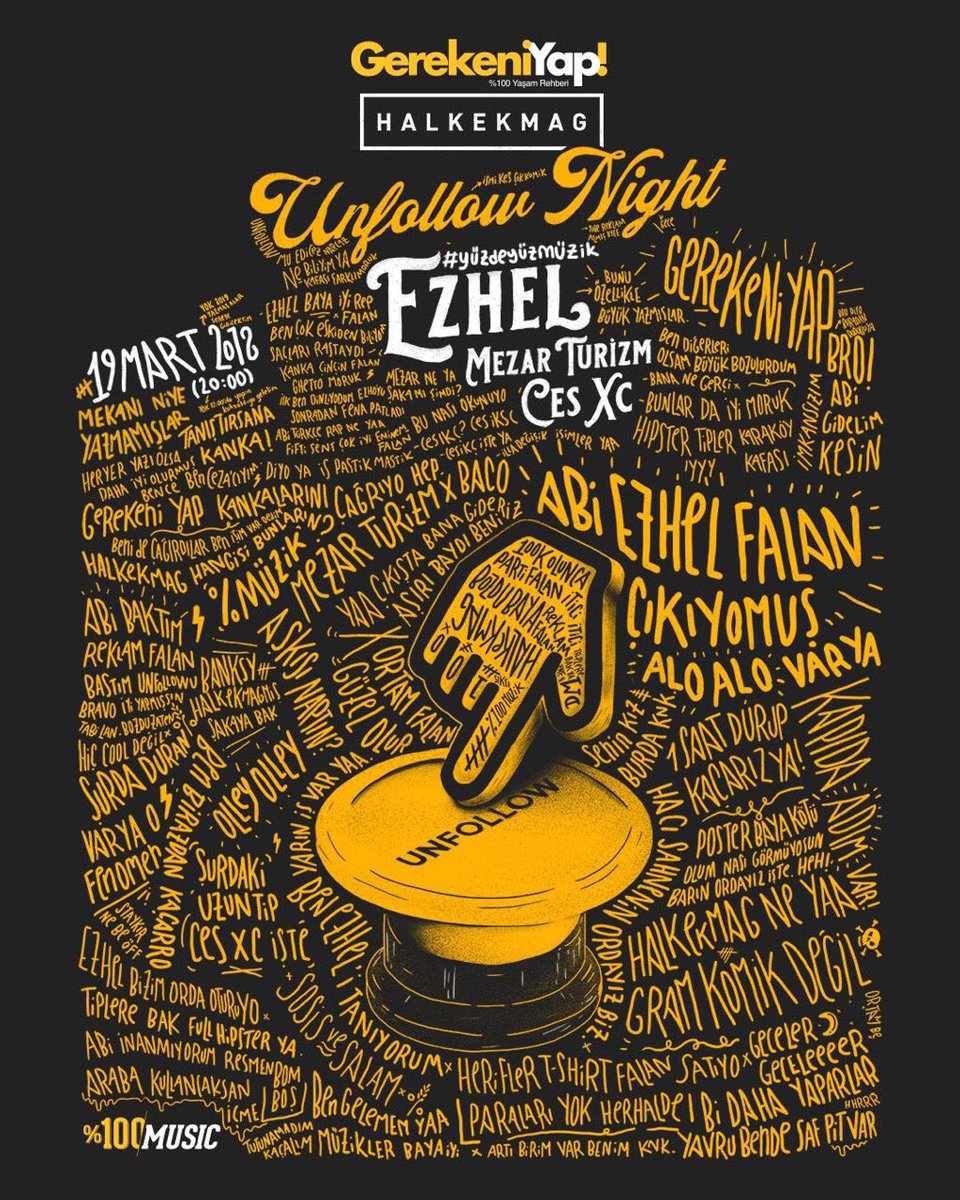 Gerekeni Yap On Twitter Gerekeniyap Ve Halkekmag Sunar Unfollow Night Sizi Kiramadik Ve Ezhel06 I Yine Sahneye Cikarttik Bizi Takibe Al Ve Tweetimizi Rt Le 19 Mart Ta Beraber Dans Edelim Sifir Giybet Yuzdeyuzmuzik