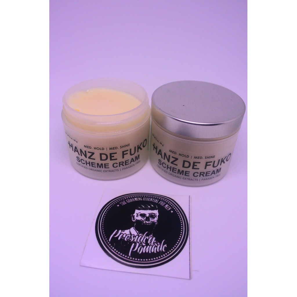 Hanz de fuko s collection of hair pomades clays and wax contain 100 certified organic all natural ingredients revolutionizing what it means to have healthy professionally styled hair. It s all natural and looks that way too in your hair with a nice matte finish that isn t super stiff. Original formulations for the one of a kind individual. Inspired by the confident dapper and fearless the product selection of hanz de fuko offers the quality conscious man all natural organic products with no parabens or sulfates.