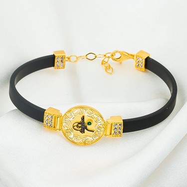 6 45 gram ağırlığında 14 ayar altın tuğralı spor ve günlük kullanıma uygun model kauçuk bileklik.