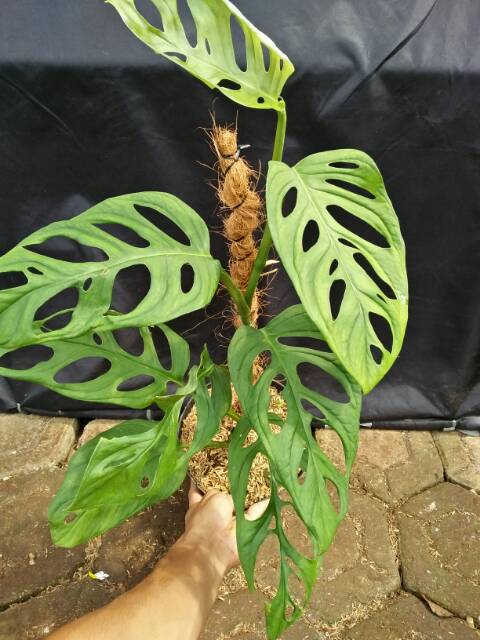 Monstera adansonii merupakan tanaman merambat memiliki perakaran serabut dengan batang halus silider memiliki panjang ruas 1 6 cm. Easy great starter plant may be toxic to pets and or c. 80cm monstera adansonii the adanson s monstera swiss cheese plant or five holes plant is a species of flowering plant from family araceae which is widespread across much of south america and central america. 79 00 bid now.