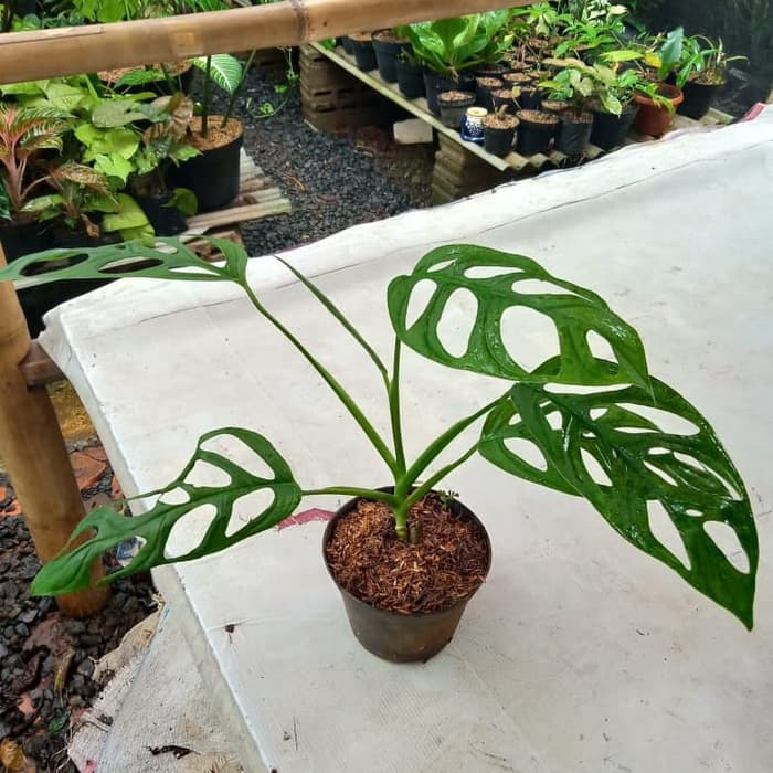 Monstera adansonii satın al. Zomioculcas zamifolia lodd engl. While the monstera adansonii was already discovered in 1693 the monstera deliciosa was only described in 1840 by the danish botanist liebmann when he found the species in mexico. Tunggal bentuk oval warna daun hijau dengan bolong tepi rata ujung daun meruncing. Monstera sp peru 69 00.