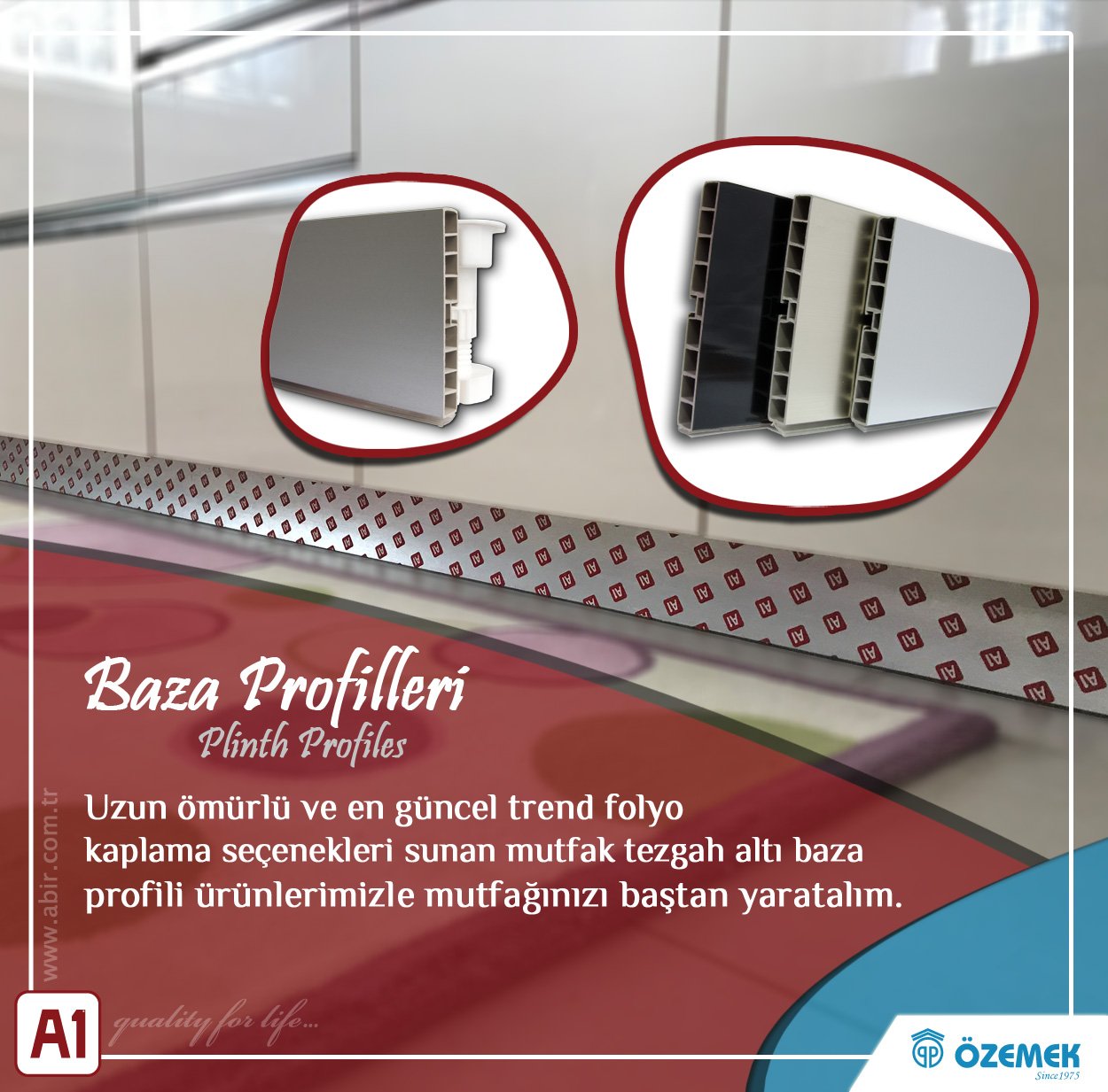 Baza profili aksesuarı montaj seti. Mutfak düzenini sağlayan ürünlerin kategorize edilmesiyle ortaya çıkmış ergonomik kullanım sağlayan ürünlerin bütününden oluşmaktadır.