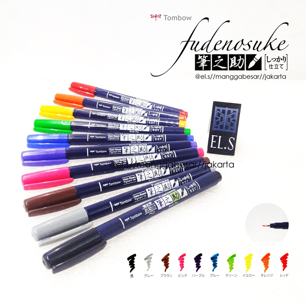 Items 1 12 of 82. Soft tip â water based pigmented black ink. Tombow fudenosuke brush pen hard tip set of 10 colors these pens have small somewhat flexible tips that allow easy transition from thick to thin lines by changing pen pressure. Tombow pencil co ltd.